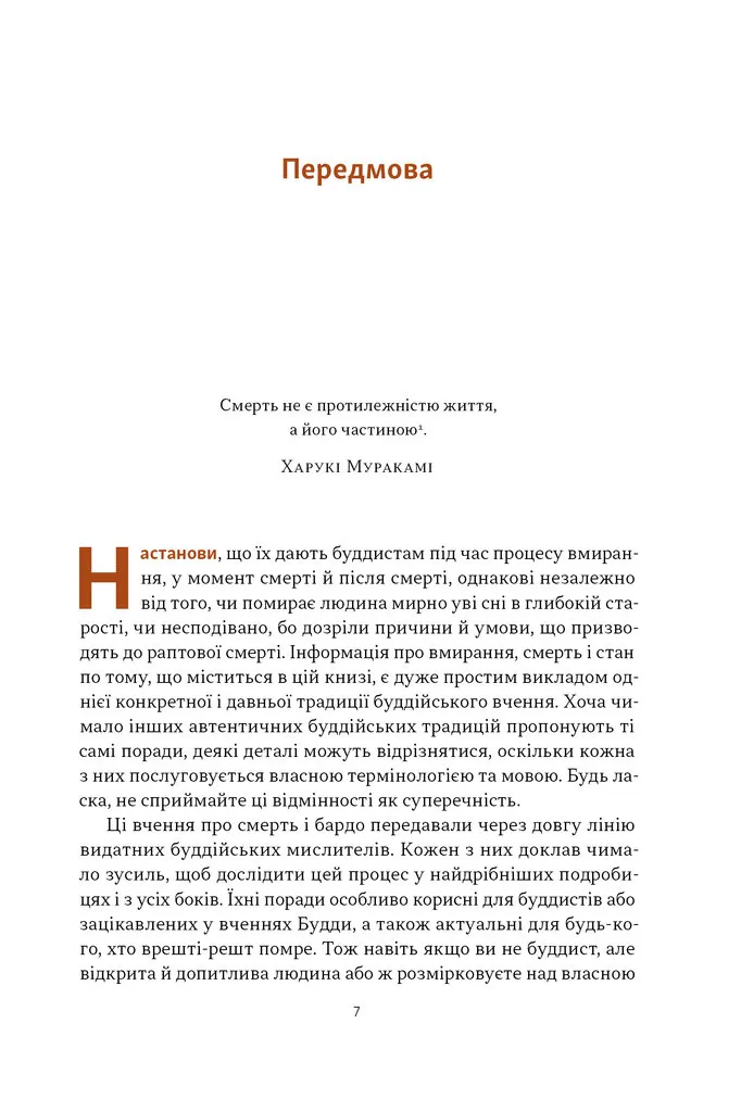 Автор поєднує буддійські вчення з практичними порадами, щоб допомогти кожному зануритись в тему усвідомленості перед фактом життя та його завершення. Через особисту призму досвіду та філософію проміжного стану бардо, він не лише переосмислює тему смерті, а й дає потужний інструмент для внутрішньої трансформації.