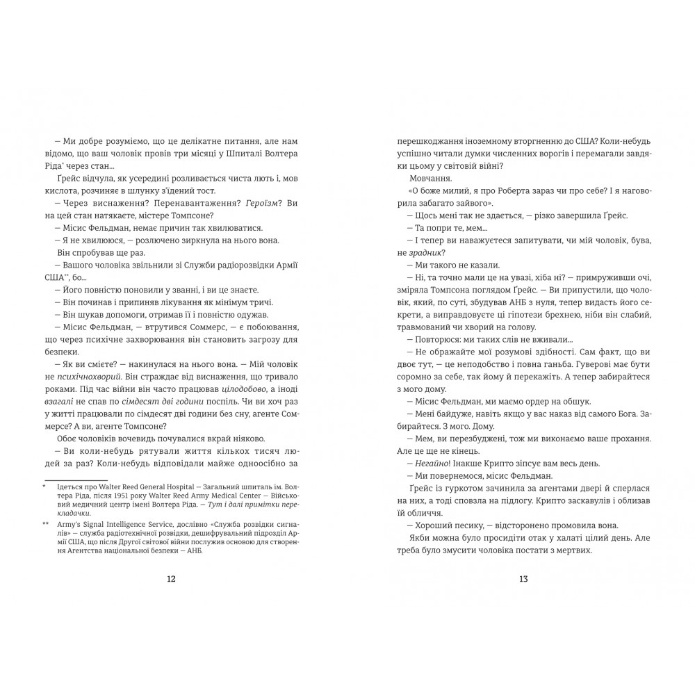 - Книга заснована на реальних подіях та особистості американської дешифрувальниці Елізабет Сміт Фридман;