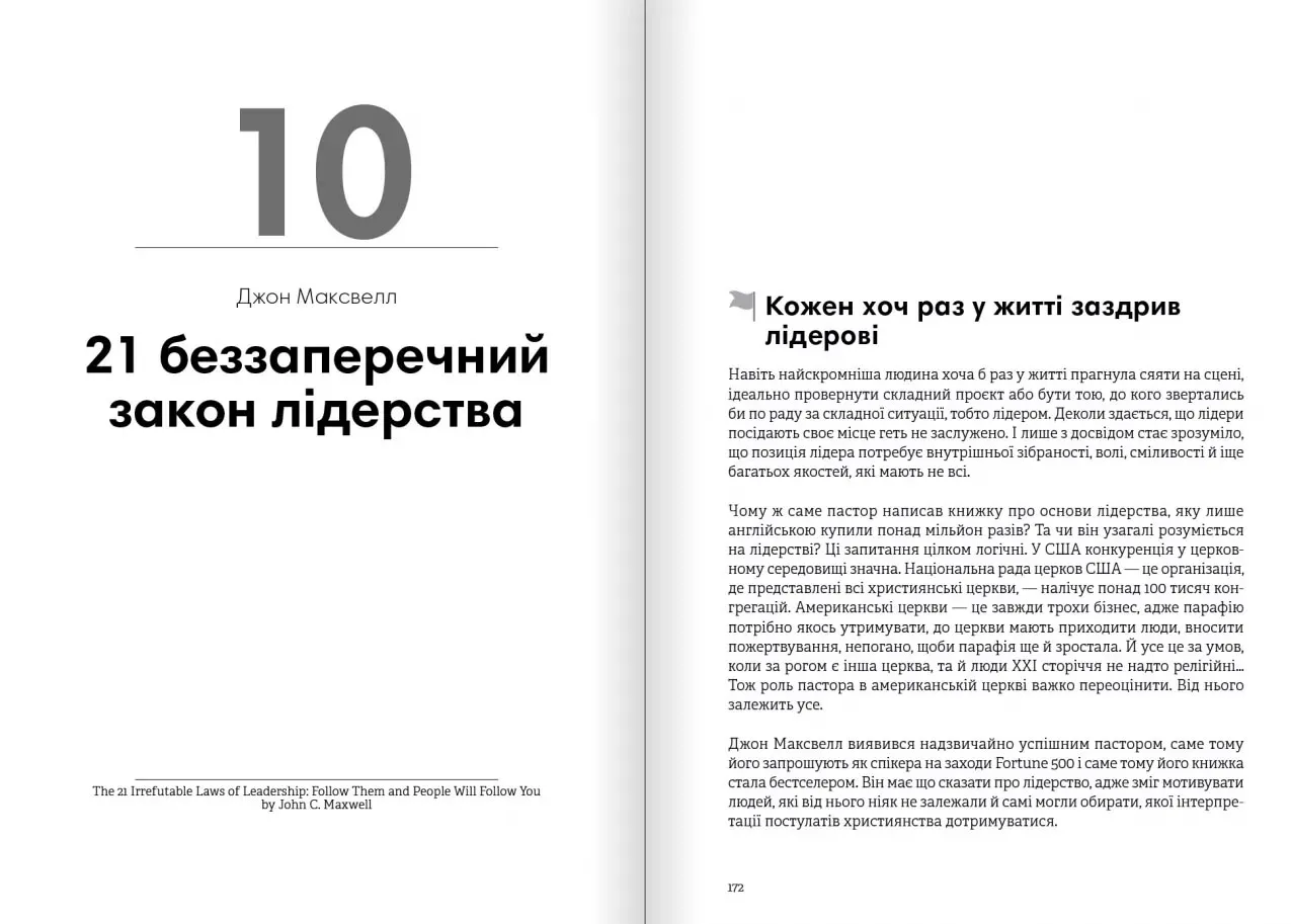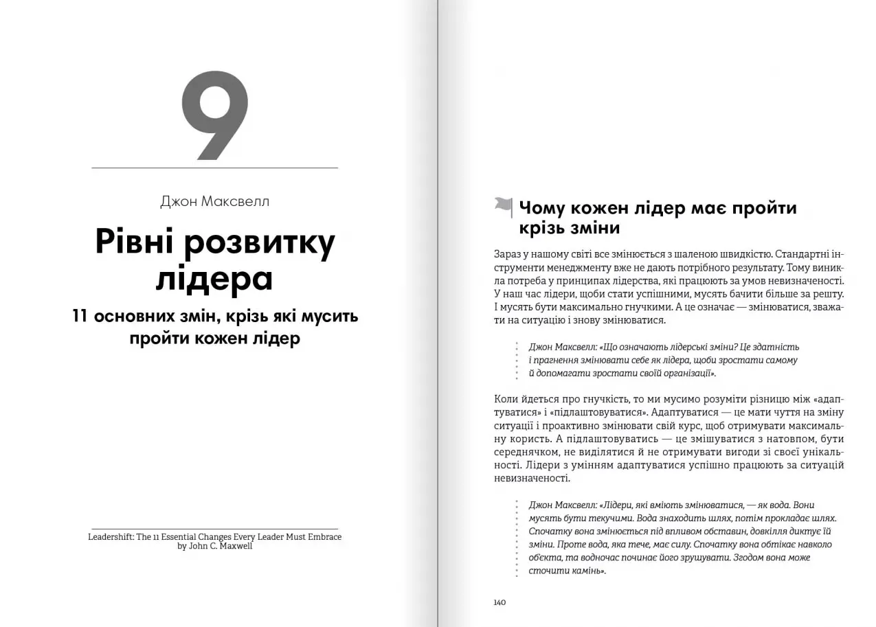 Бути лідером — це не просто мати керівну посаду. Це здатність вести за собою, надихати, впливати. У книзі детально описано, що саме відрізняє справжніх лідерів від формальних управлінців. Ключові теми, яких торкається збірник: