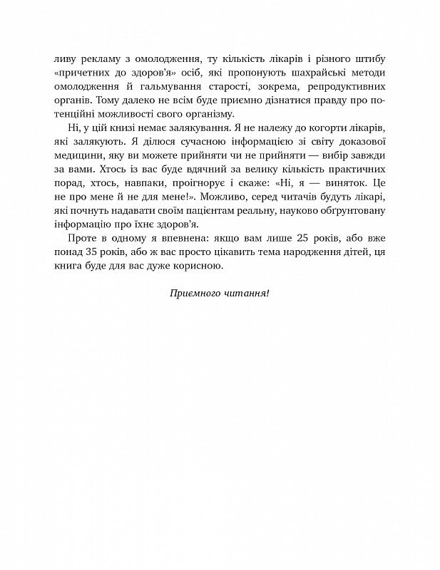 Нині ситуації, коли жінки вперше стають мамами у віці 35 років і більше, зустрічаються дедалі частіше. Однак усе ще панує багато міфів, ілюзій і переконань про те, що пізня перша вагітність становить загрозу і жінці, і дитині. Олена Березовська, відома лікарка-гінеколог, авторка бестселера «9 місяців щастя», у своїй новій книзі розвінчує багато подібних міфів, а також ділиться науково обґрунтованою й перевіреною інформацією, яка допоможе жінкам завагітніти, виносити й народити здорову дитину. У книзі розглянуто фактори, які можуть вплинути на вагітність і виношування дитини у жінок віком понад 35 років; розповідається, як вирахувати фертильні дні і які дослідження потрібно пройти, перш ніж планувати вагітність; а також як запобігти можливим ускладненням і народити здорового малюка. Книга буде корисною і тим, хто готується стати мамою вперше, і тим, хто вирішив народити другу або третю дитину.