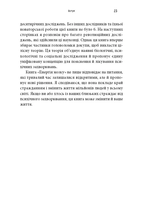 У книзі Енергія мозку автор розкриває сучасні наукові підходи до причин психічних захворювань. Він описує: