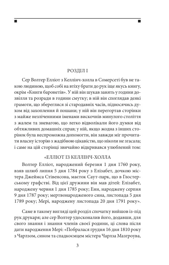 Джейн Остін (1775–1817) – одна з найвизначніших англійських письменниць класичної доби. Її романи стали золотим стандартом літературної майстерності. Вона першою зробила жіночі долі центральною темою прози, зберігаючи водночас психологізм, драматизм і витончений британський гумор.