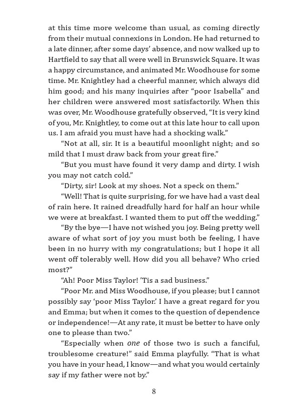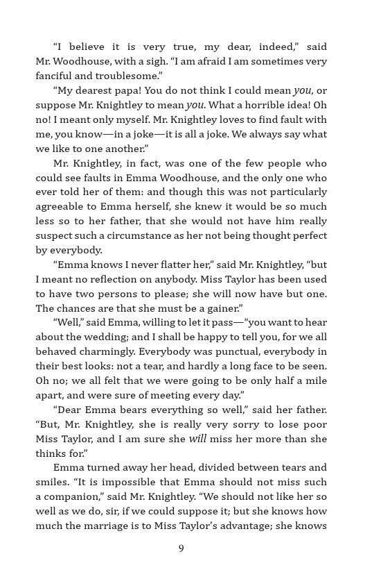 Суперечливість її характеру, її впевненість у власній правоті та романтичні інтриги, які вона плете, створюють напружені та кумедні ситуації протягом усього роману. Та попри помилки й самовпевненість, Емма проходить шлях самовдосконалення, переосмислення власних поглядів і почуттів.