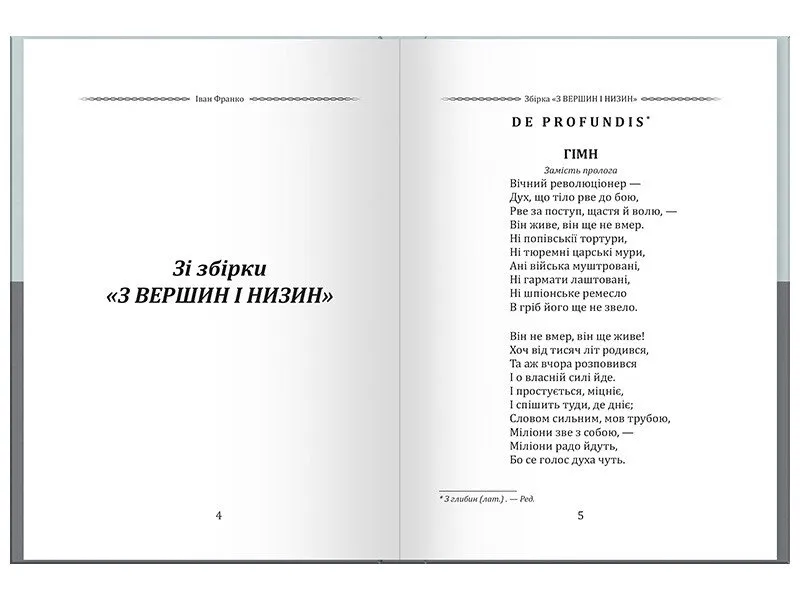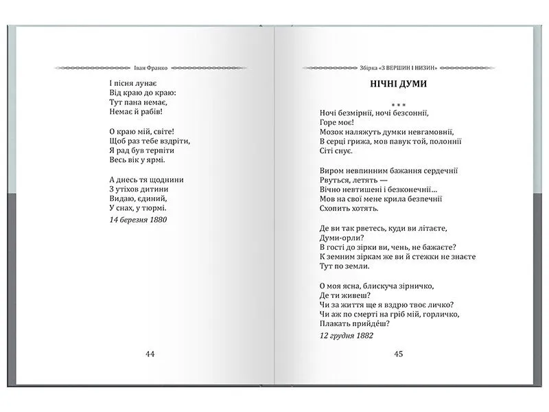 Це видання вміщує проникливі, емоційні тексти, що передають внутрішній світ поета та його філософські роздуми. Вірші Івана Франка актуальні й сьогодні, адже містять цінності, які об’єднують покоління — любов до Батьківщини, гідність, боротьбу за правду та віру в майбутнє.