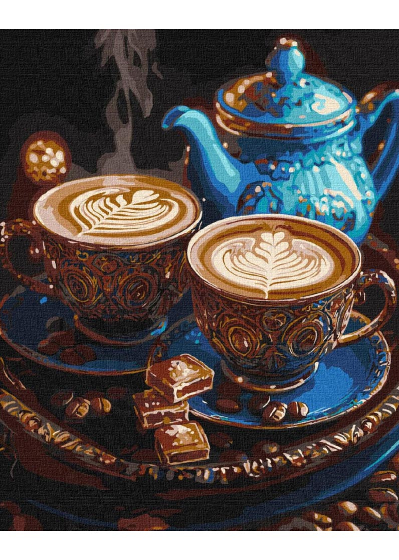 Картина за номерами "Мелодія кави" з фарбами металік Extra від ТМ Ідейка — це ідеальний вибір для тих, хто шукає творчий і захоплюючий спосіб провести час. Вона стане чудовим подарунком, оригінальним сувенірем або стильним елементом декору для вашого дому.