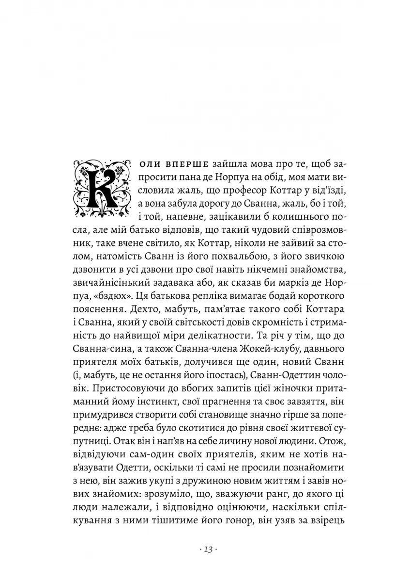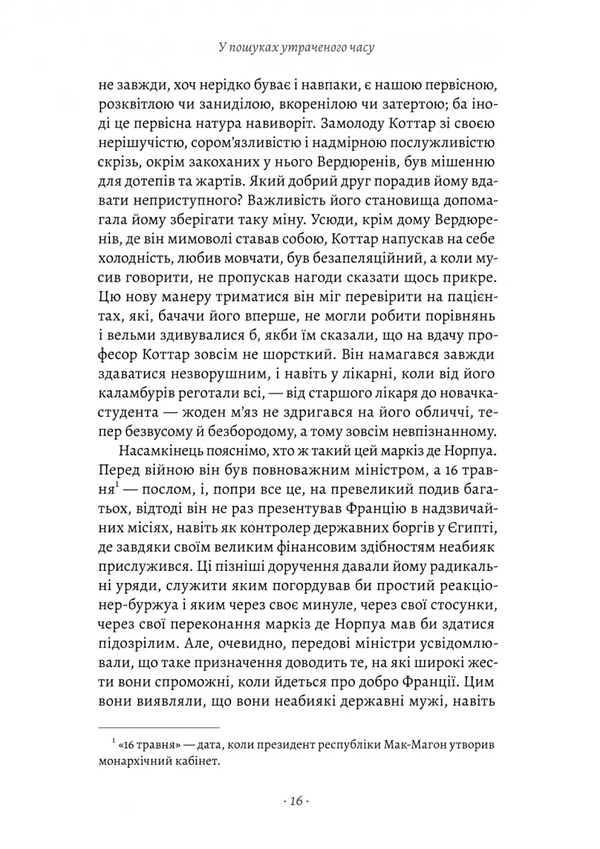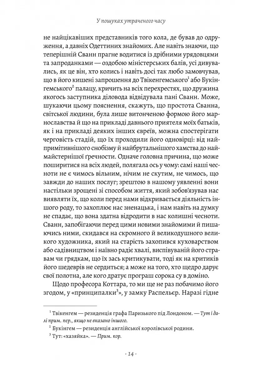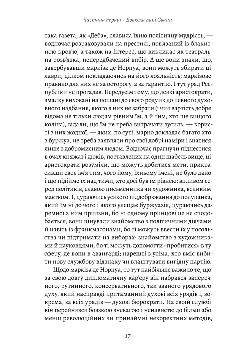 Книга стане справжнім відкриттям для поціновувачів психологічної літератури, де крізь призму дитячих переживань юний герой поступово входить у доросле життя. Марсель Пруст майстерно описує складні людські стосунки, шлях героя до самопізнання, розчарування й глибоке розуміння свого місця у світі. Його проза вирізняється своєрідною меланхолійною атмосферою, деталізацією та чуттєвістю образів.