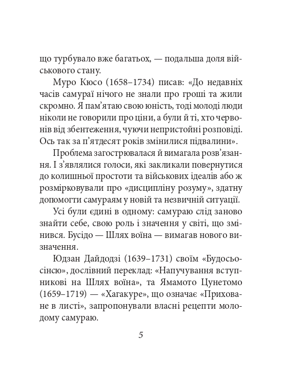 Цей трактат, присвячений становленню самурая, міг би стати наукою тільки для одного японського воїна. Однак Тасіро Цурамото, який упродовж семи років старанно записував повчання свого вчителя Ямамото Цунетомо (1659–1719), не виконав його останньої поради — спалити рукопис. Так світ отримав «Хагакуре», в якому найповніше і водночас лаконічно викладено основні ідеї бусідо — зведення правил і настанов для самураїв, які також мали вплив на розвиток японської нації, її культури та ідеології. Українською назва звучить «Приховане в листі», адже далеко не кожному дано пізнати Шлях воїна.