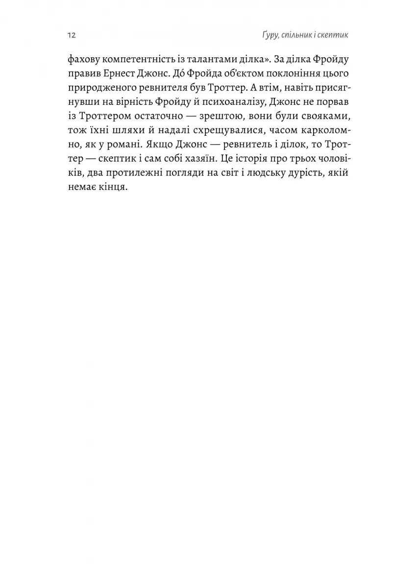 Книга Ґуру, спільник і скептик — це глибока й емоційна подорож у світ психоаналізу та особистих драм трьох визначних постатей: Ернеста Джонса, Зиґмунда Фройда та Вілфреда Троттера. Автор, Шеймус О'Магоні, детально досліджує зв'язки між наукою, сексом і амбіціями на тлі бурхливих подій початку XX століття.