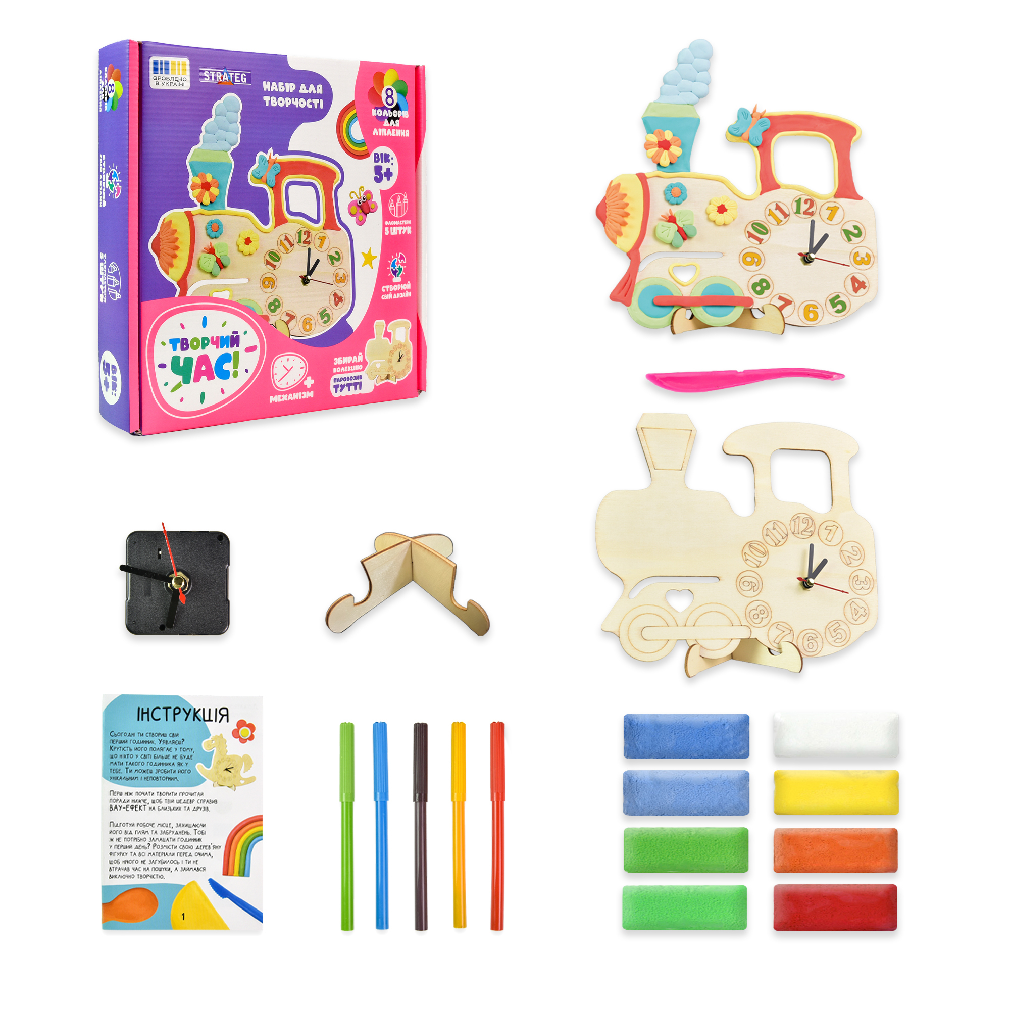 Набір Strateg Паровозик Тутті — чудове рішення для батьків, які хочуть поєднати навчання та розвагу. Після завершення проєкту ваша дитина матиме не просто годинник, а справжній витвір мистецтва, який гордо займе місце у дитячій кімнаті.