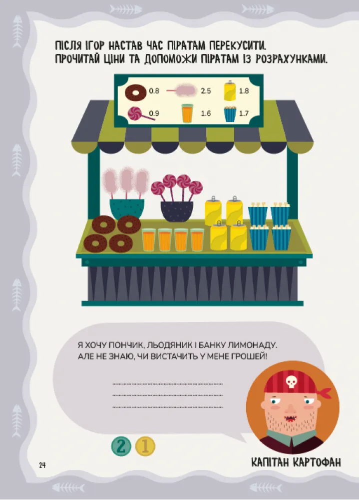 Підручник створений за концепцією навчання через гру. Завдання супроводжуються піратськими пригодами, інтерактивними історіями та понад 92 яскравими наліпками. Це значно підвищує зацікавленість дитини та допомагає краще засвоїти матеріал.
