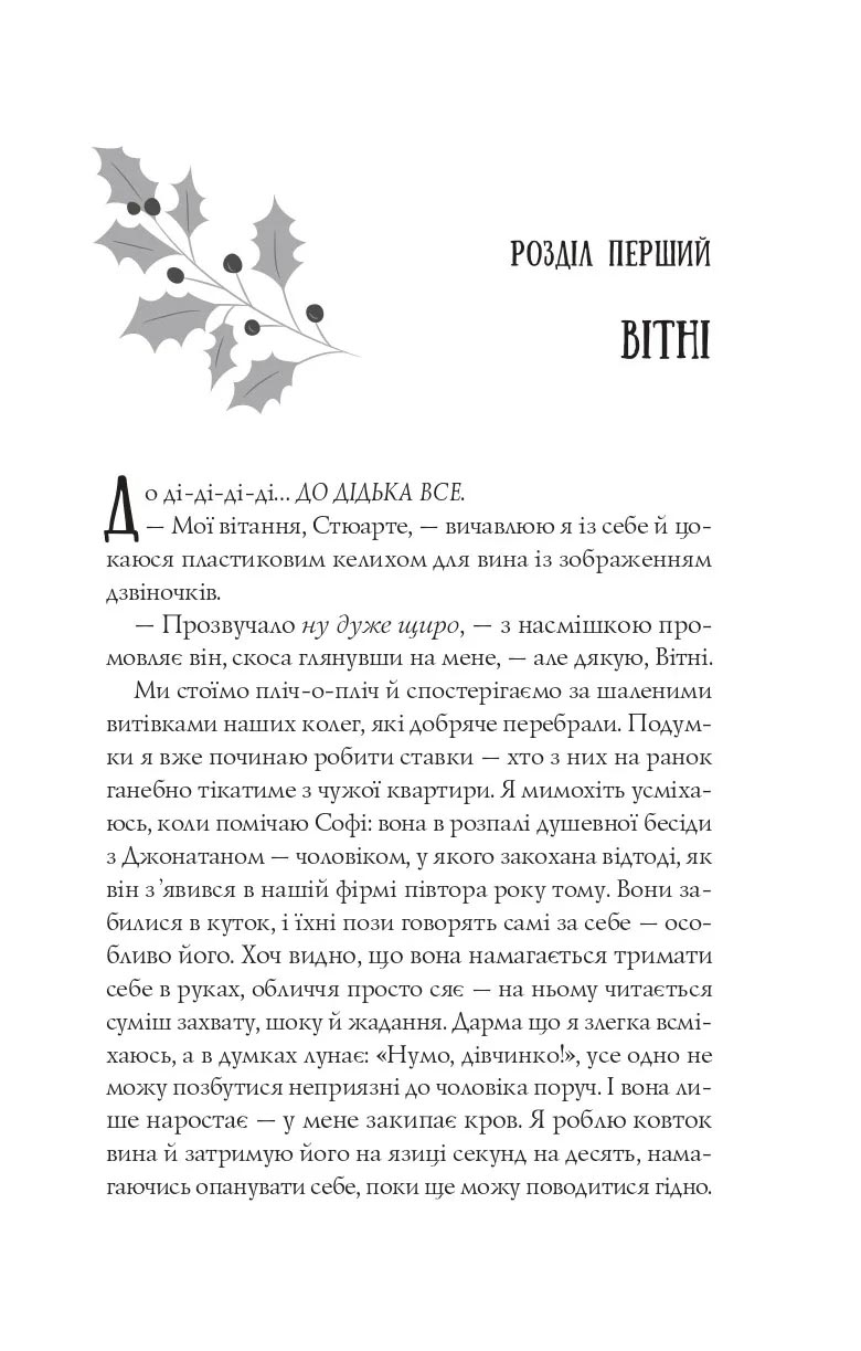 Головна героїня роману, Вітні, переживає непростий період: зіпсовані стосунки, зламаний палець, розчарування в роботі. Вона сподівалася на підвищення, але залишилася осторонь успіху. Різдвяна атмосфера мала б принести тепло та надію, однак цього року все йде не за планом.