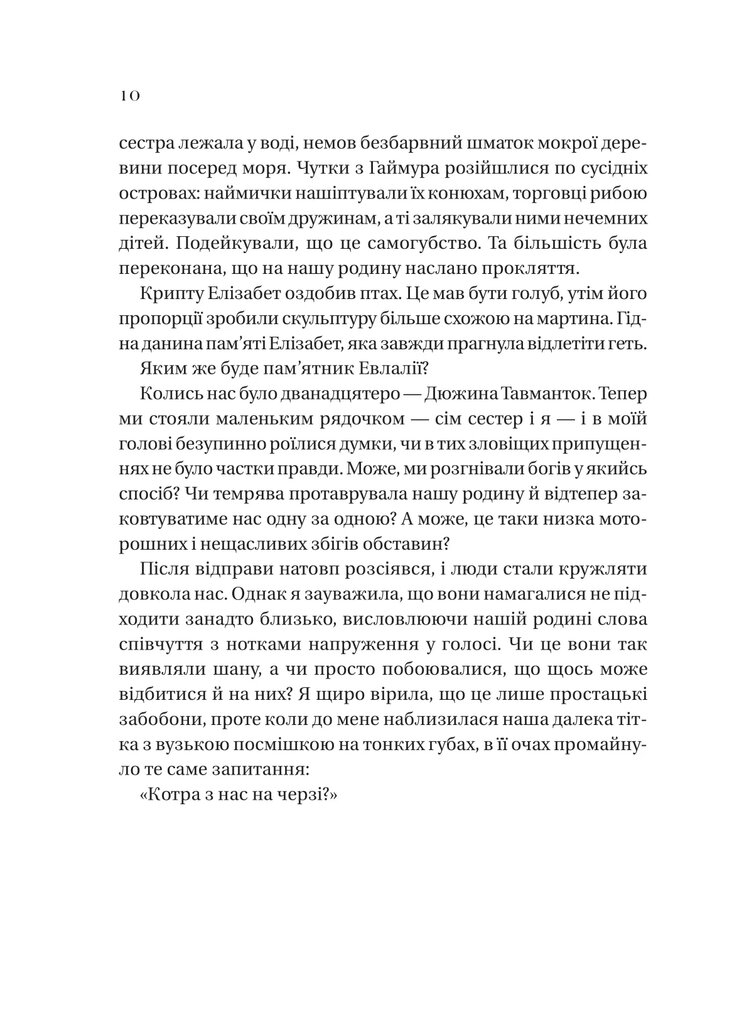 Історія розгортається в сімействі Тавманток, де одне за одним трагічно гинуть сестри. Віджилих дівчат було дванадцятеро, та четверо вже померли при загадкових обставинах. Головна героїня Еннелі починає підозрювати, що ці смерті не випадкові, і що їх родина жорстоко проклята.