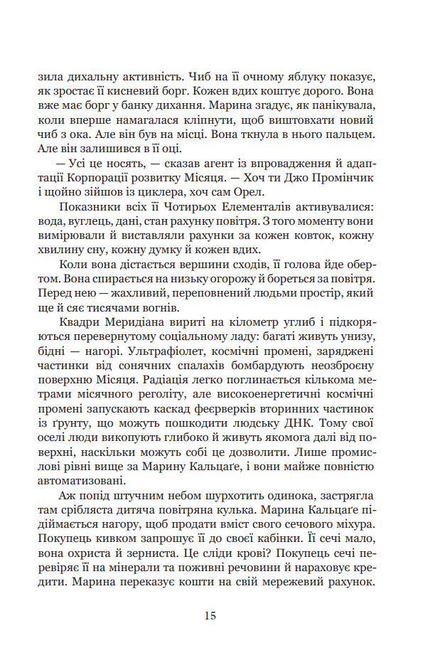 Місяць постійно хоче тебе вбити. Він має для цього тисячі способів: крижаний вакуум, смертельна радіація, задуха від реголітового пилу чи поступове руйнування кісток твого тіла. І якщо ти виживеш, тебе намагатимуться зламати П’ять Драконів — корпорації, що керують місячними багатствами та навіть твоїм диханням.