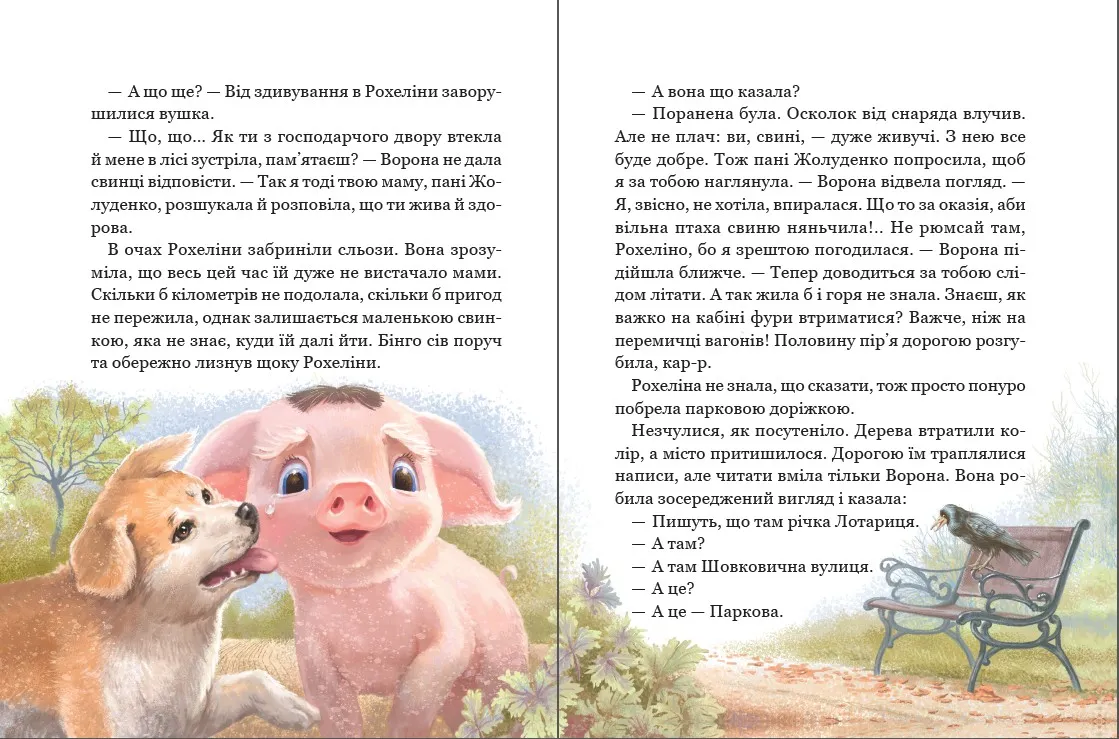 Казкова повість Рохеліна Жолуденко та Бінго — це зворушлива історія про свинку, яка змушена залишити свою рідну ферму через війну. Написана українською авторкою Оленою Скуловатовою, книжка входить до серії Моя перша бібліотека та створена спеціально для молодших і середніх школярів.