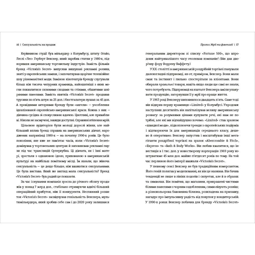 Це захоплива книга для всіх, хто прагне глибше зрозуміти силу бренду та його вплив на суспільство. Видання весілить увагу не тільки історією Victoria’s Secret, але і мріями поколінь, які з ним росли.