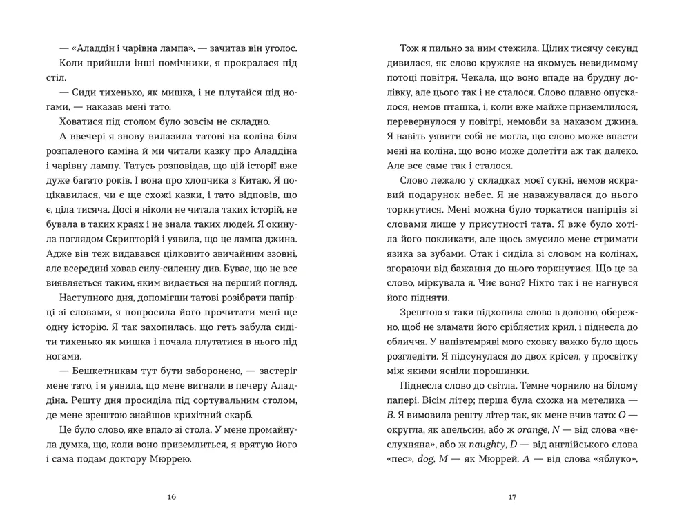 Есме народилася у світі слів. Сирота з невтомною жагою до знань, вона зростає в так званому Скрипторії — місці, де її батько разом із командою відданих лексикографів укладає перший в історії Оксфордський словник англійської мови. Її дитячий простір — під сортувальним столом, де вона непомітна, тиха, майже невидима. Одного дня з нього падає аркуш з написаним словом bondmaid, невільниця. Есме підбирає його й ховає в стару дерев’яну валізку, що належить її подрузі Ліззі — служниці у великому домі. Відтоді вона починає збирати й інші слова — ті, що були загублені, відкинуті або проігноровані. Слова, яким не знайшлося місця в словнику чоловіків. Саме вони допомагають їй глибше зрозуміти світ навколо.