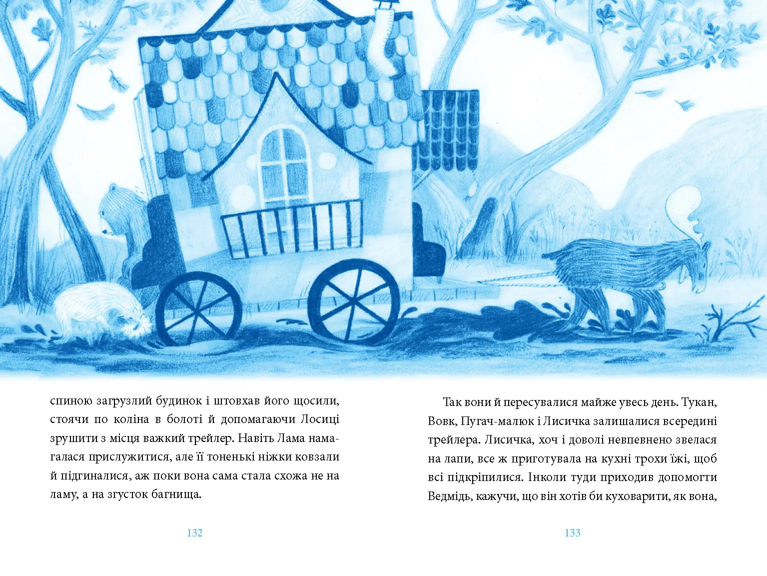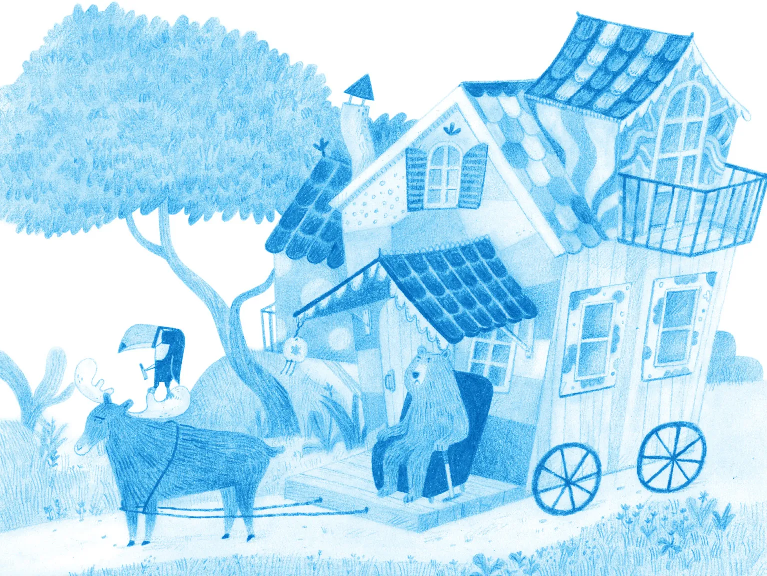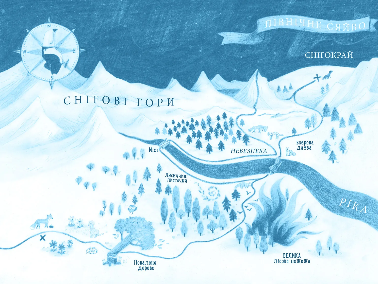 Звивистим путівцем повільно котиться будиночок на колесах — тягне його сумовита Лосиця. У ньому їде незвичайна компанія: мудра Лисичка, поважний Ведмідь, артистичний Тукан з магнітним дзьобом, що завжди вказує на північ, енергійна Юна Лама та запальний Пугач-малюк. Вони мандрують до Снігокраю, щоб побачити Північне сяйво. Їхній шлях сповнений різноманітних пригод, але справжнє випробування чекає на них наприкінці мандрівки...