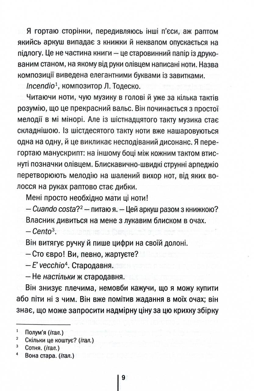 Сюжет переносить читача до Бостона, де сучасна скрипалька Джулія під час мандрівки Італією знаходить збірку стародавніх ромських мелодій. Особливу увагу жінки привертає аркуш із невідомою композицією Incendio — полум’яний вальс, що змінює усе навколо. Із хвилею кожного акорду починають відбуватися дивні й небезпечні речі. Джулія здогадується, що ця музика — ключ до страшної таємниці, захованої в минулому.