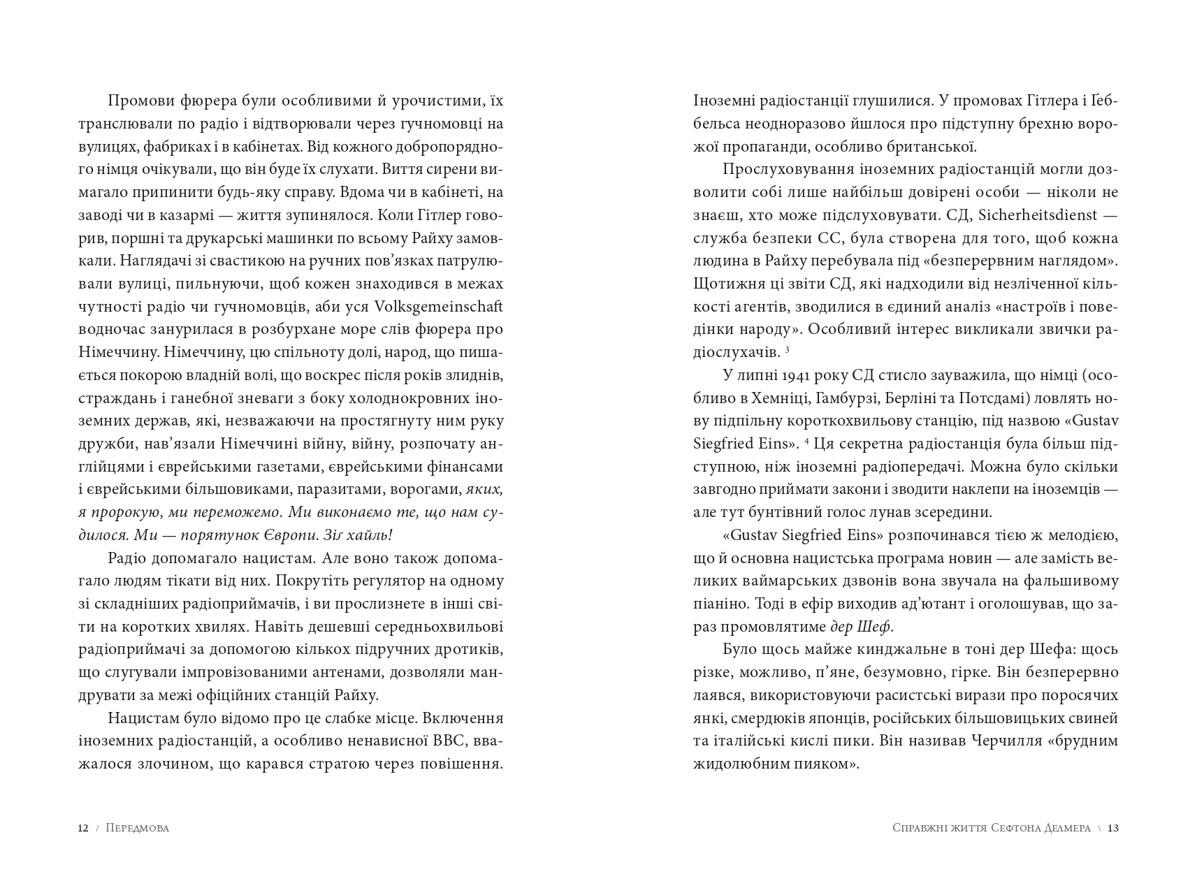 Чи знали ви, що під час Другої світової британці створювали фейкові нацистські радіостанції, розповсюджували листівки для поширення ухилянства в Райху, а матерям загиблих німецьких солдатів надсилали продуктові посилки нібито від синів із-за кордону, щоб у тилу ворога створювати міф про масове дезертирство? За всіма цими блискучими інформаційно-психологічними спецопераціями стояв Сефтон Делмер, який свій талант поставив на службу батьківщині і створив цілу команду для перемоги в (інформаційній) війні. Пітер Померанцев розказує його біографію так, ніби змальовує весь портрет епохи між двома світовими війнами, окремо акцентуючи на технічному прогресі, який зробив пропаганду справді масовою. Багата на деталі й написана легко, мов художній роман, ця нон-фікшн книжка дає читачу поживу для роздумів: чи може пропаганда бути й доброю, а не тільки поганою? Чи можна брехати на благо? Сефтон Делмер – зрадник журналістських стандартів і злий геній чи патріот, який допоміг своїй країні вижити й перемогти? Де та межа, коли дуже талановита й майстерна дезінформація перетворюється фактично на твір мистецтва? Це історична книжка про давно забуті події, які пронизливо точно нагадують наш час і нашу війну.