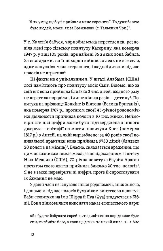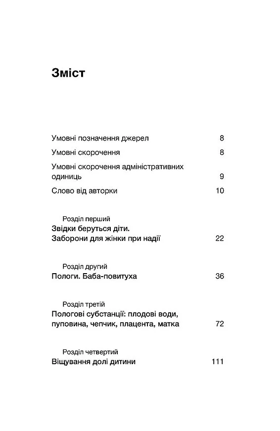 У книзі зібрані численні польові етнографічні матеріали, що надають змогу відчути живе дихання сільського побуту. Свідчення жінок, які розповідають про досвід своїх матерів і бабусь, допомагають краще зрозуміти роль повитухи, її компетенції, символіку дій і обрядів. Замовляння, молитви, прикмети, заборони — усе це ставало невід’ємною частиною процесу народження дитини.
