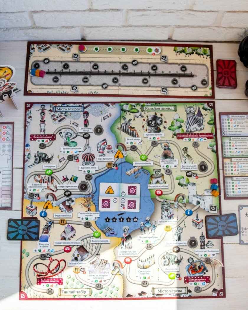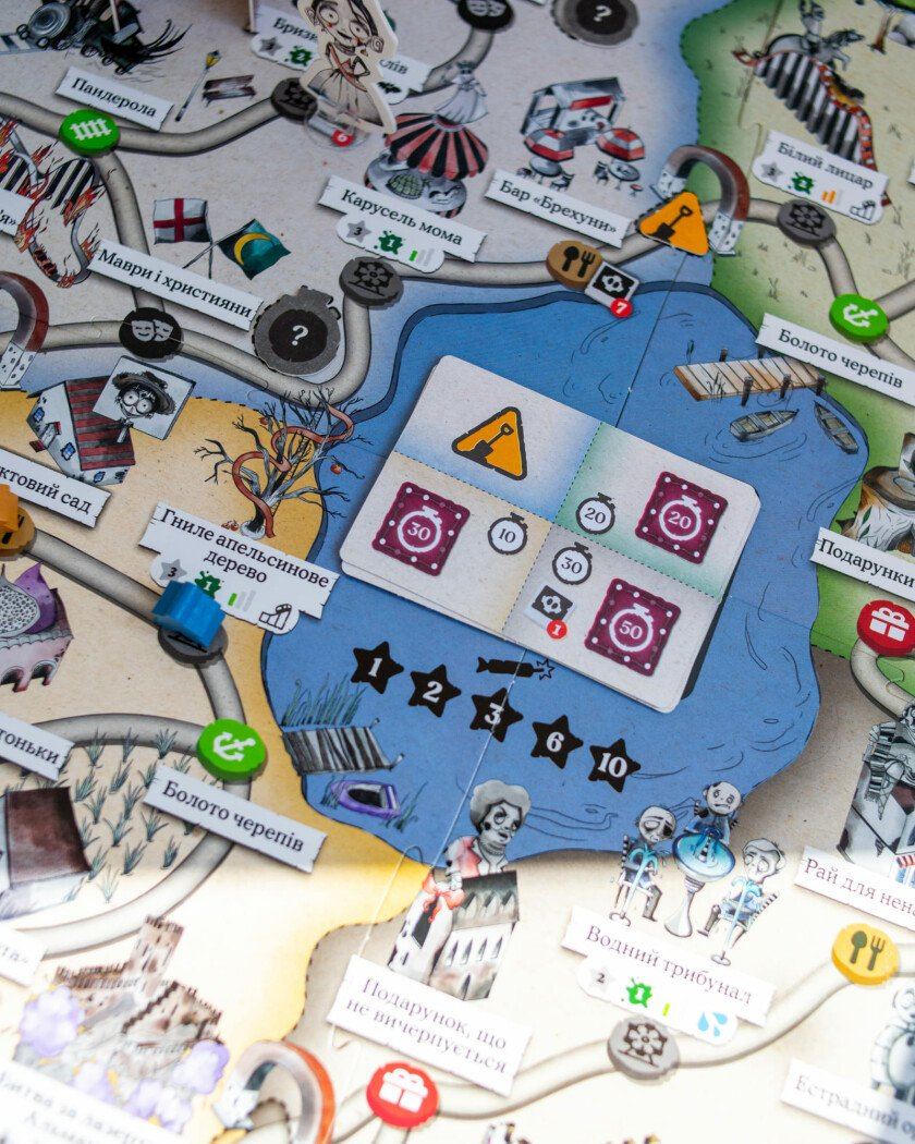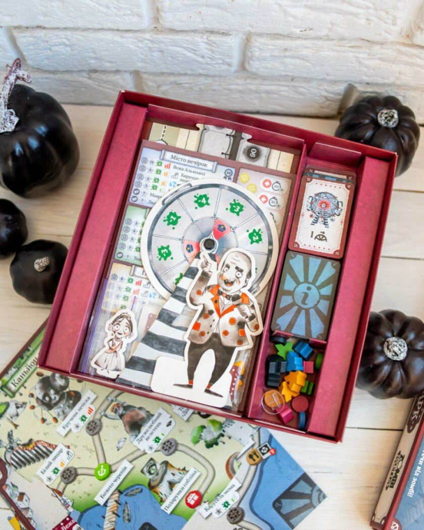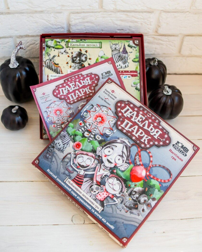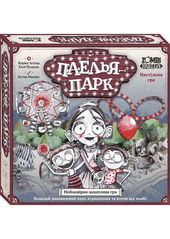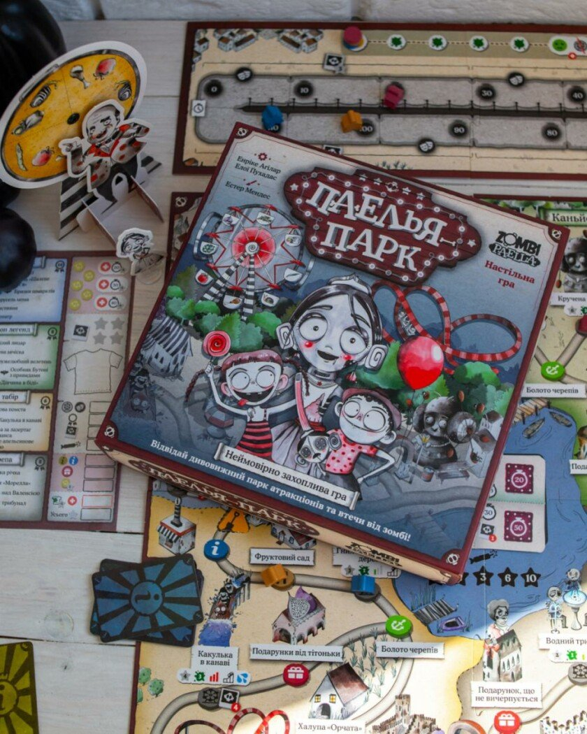 Паелья парк — не просто настільна гра, а повномасштабне занурення у хаотичний, веселий світ, де зомбі керують атракціонами. Кожен хід — це боротьба за фотографію з Королевою, змагання за найкращий атракціон і спроба встигнути до феєрверку. Кожне рішення гравця має наслідки, тож конкуренція — запекла.