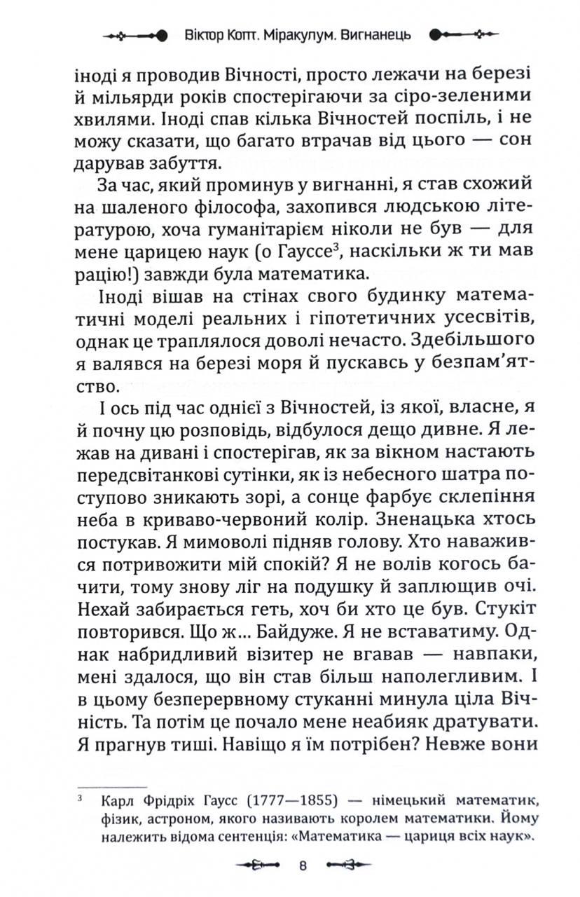 Міракулум. Вигнанець — це новий яскравий представник української наукової фантастики 2025 року, написаний Віктором Коптом. Книга поєднує у собі елементи психологічної драми, філософського роману та технофентезі. Вона вже здобула схвальні відгуки читачів і критиків як один із потенційних книжкових бестселерів року.