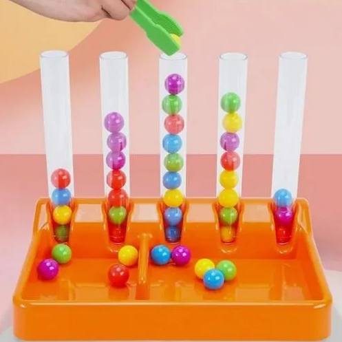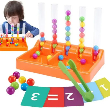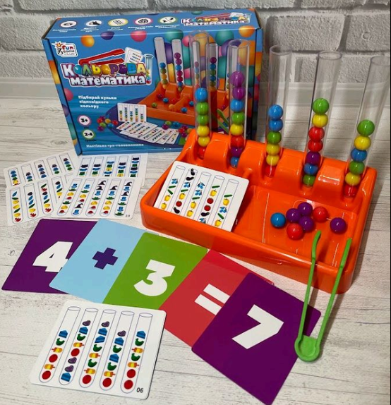 Кольорова математика. Прозорі колби, 40 кульок, ігрові картки, щипці