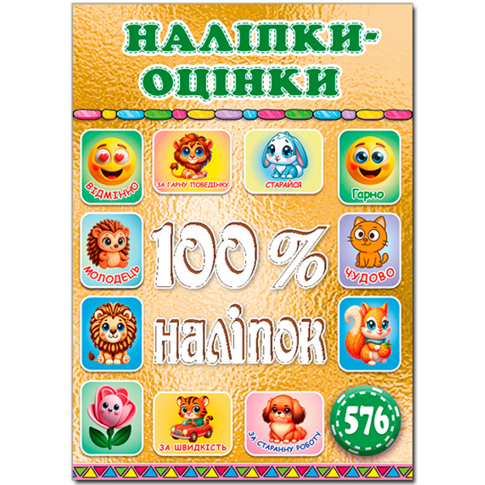 Серія видавництва Глорія «100% наліпок» створена для дітей, які дуже хочуть прикрасити все довкола себе. Книжки з наклейками допоможуть дитині не лише навчитися розрізняти кольори, розвинути моторику та уяву, а й допоможуть познайомитися з основними геометричними фігурами. До серії входять наклейки-оцінки, за допомогою яких можна заохочувати діток до цікавих занять та наліпки з тваринкам, машинками та ін.