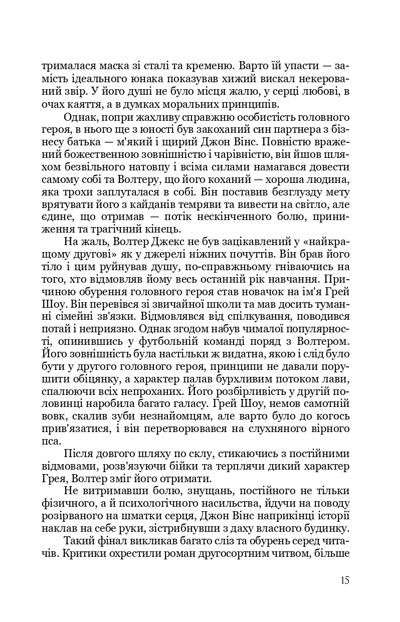 Зверніть увагу, що книга містить сцени фізичного та сексуального насильства, які можуть бути неприйнятними для деяких людей. Авторка свідомо застерігає, що описані події можуть викликати неприємні емоції. Якщо ви чутливі до певних тем або маєте негативний досвід, пов'язаний з насильством, радимо обдумати можливість читання цієї книги.