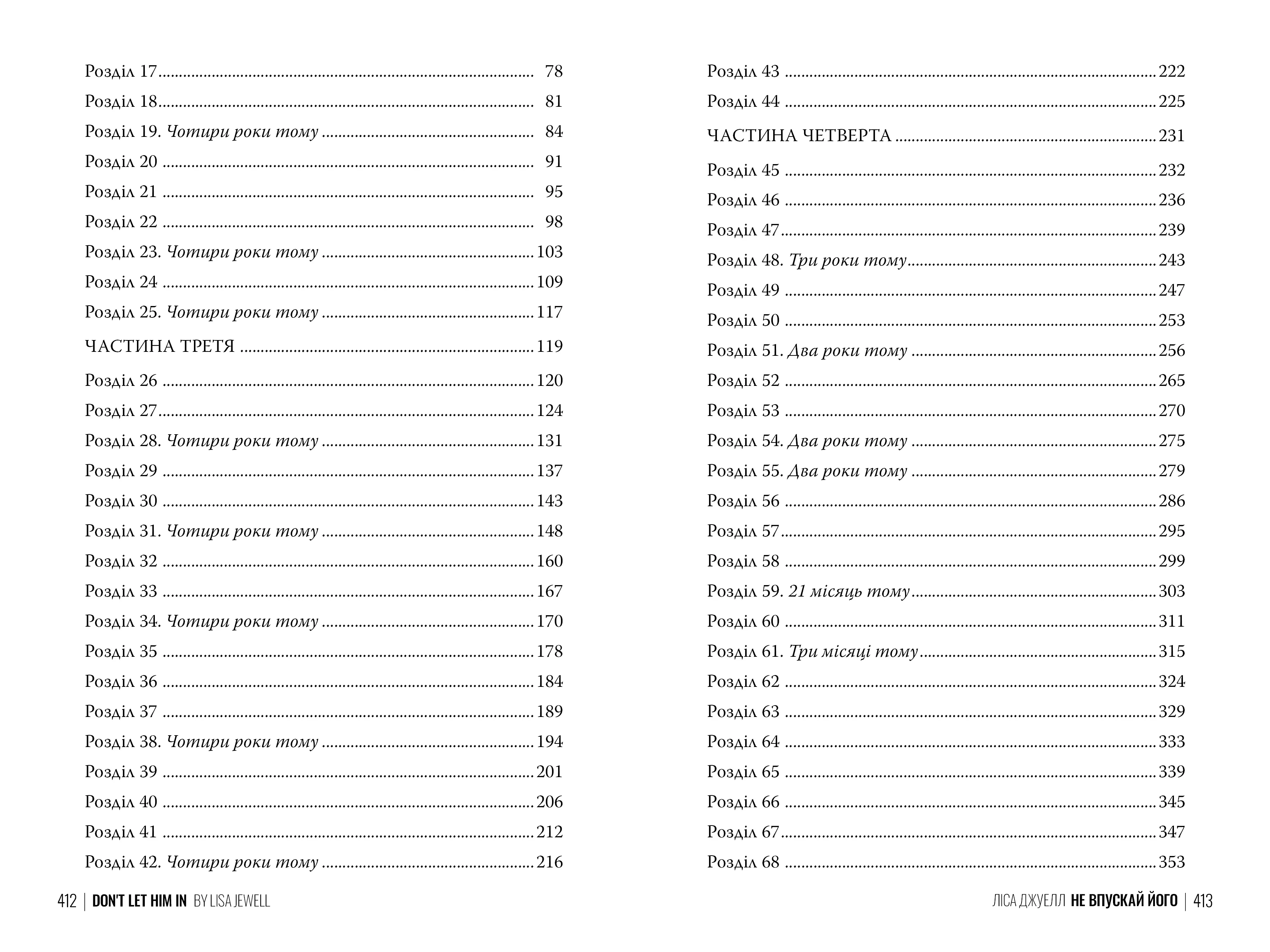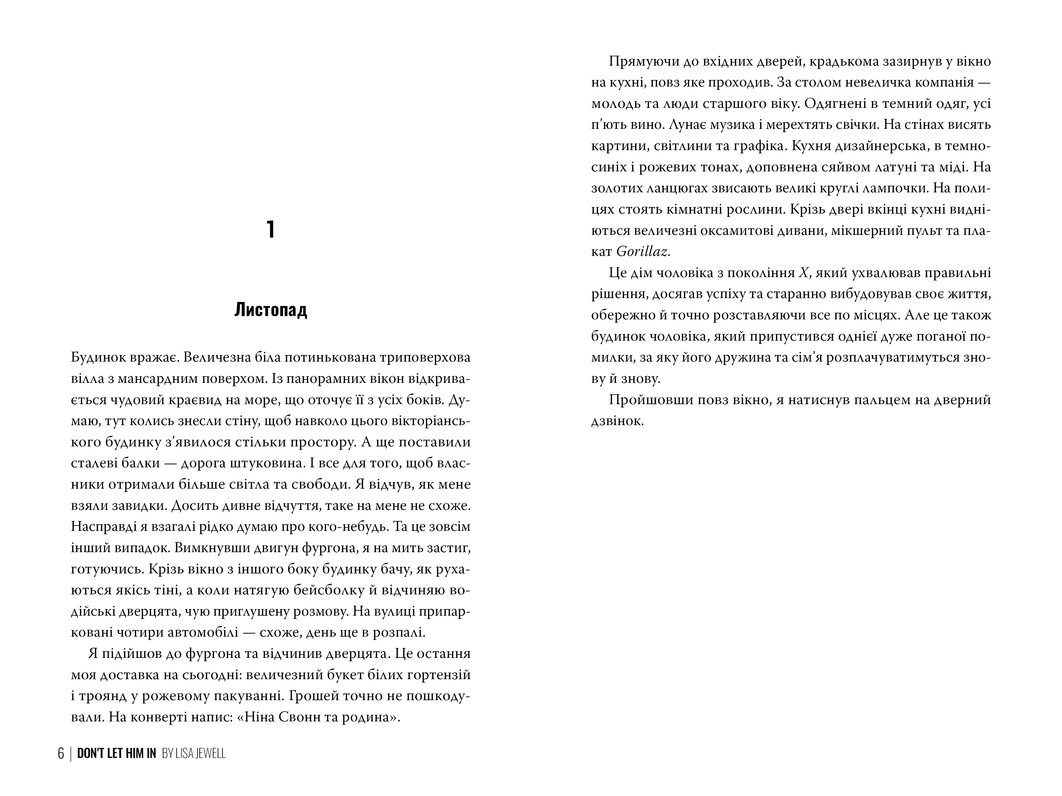 Роман Не впускай його — стильна та напружена історія, з якої майстерно вплітаються теми недовіри, втраченого минулого і тяжкості прийняття правди. Цю книгу написала Ліса Джуелл — відома британська авторка, чиї твори часто стають світовими бестселерами.