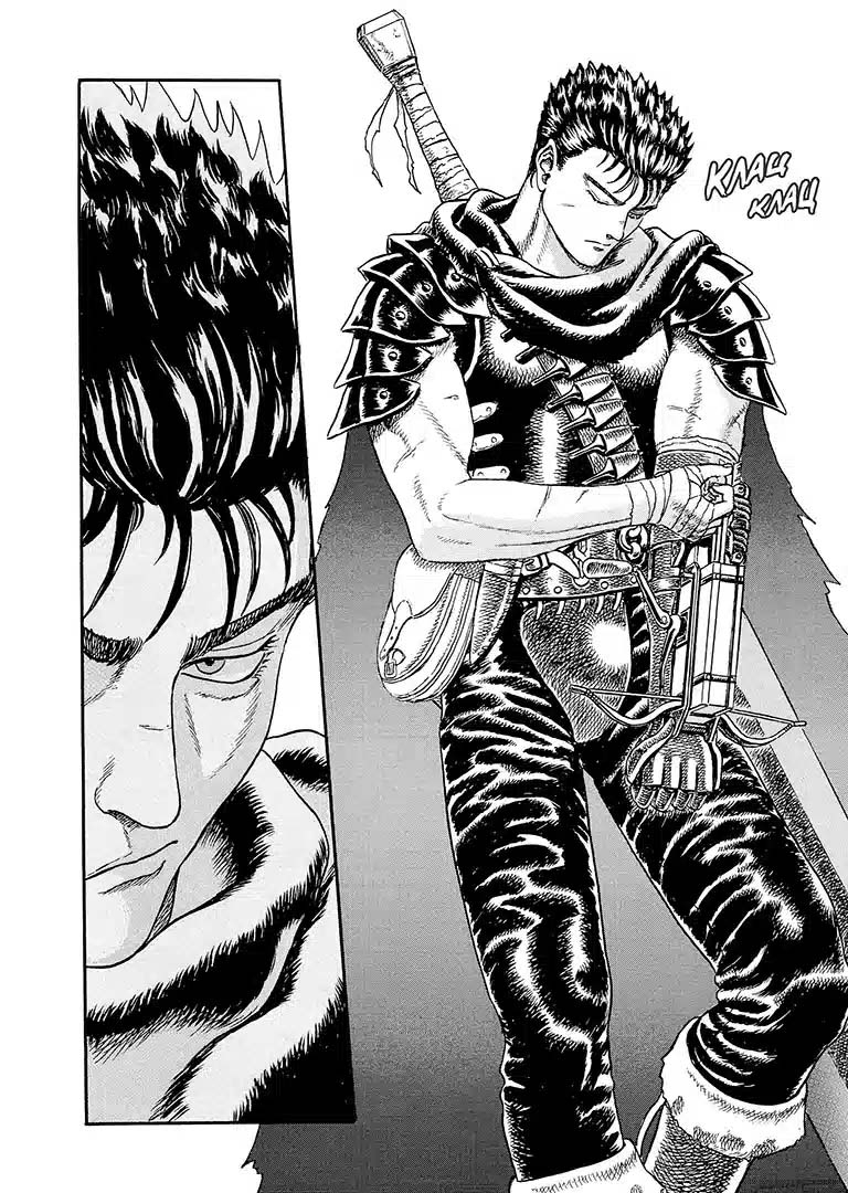 Сюжет манґи розгортається у темному фентезійному світі, де демони вільно крокують серед людей, а небеса мовчать. У цьому похмурому всесвіті з’являється герой — Ґатс, знаний як Чорний Мечник. Його обличчя завжди приховане тінню, а в руках він носить меч таких розмірів, що його важко назвати людською зброєю. Ґатс уособлює нескорену силу волі та прагнення до справедливості. Він не зупиниться, поки не знищить того, хто став початком його трагедії.