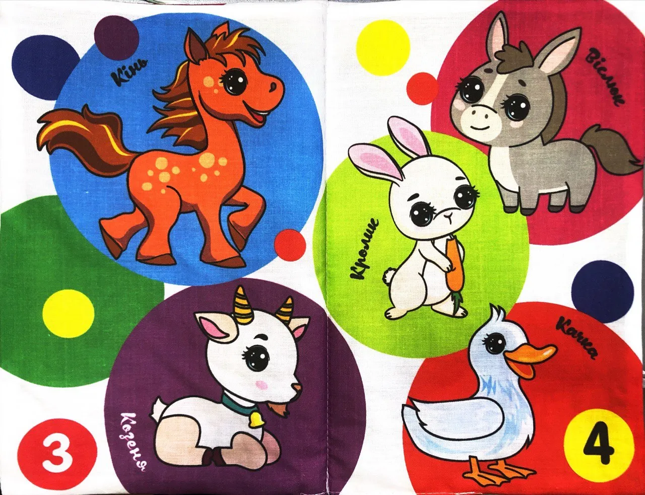 Кожна сторінка книги — це нові тваринки. Завдяки барвистим малюнкам і великим деталям, дітям буде легко сприймати інформацію візуально. М'який матеріал дозволяє безпечно гратися книжкою навіть малюкам до року. Приємні на дотик сторінки стимулюють тактильне сприйняття та розвивають дрібну моторику рук.