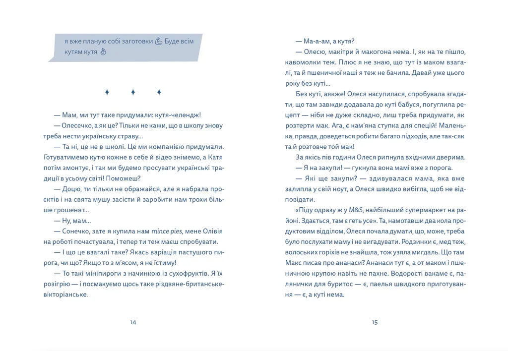 Іноді приготувати кутю — справжній челендж. Особливо, якщо ви опинилися далеко від дому і не маєте жодних інгредієнтів, крім великого бажання — такого, як мали герої однойменного оповідання, що й дало назву збірці.