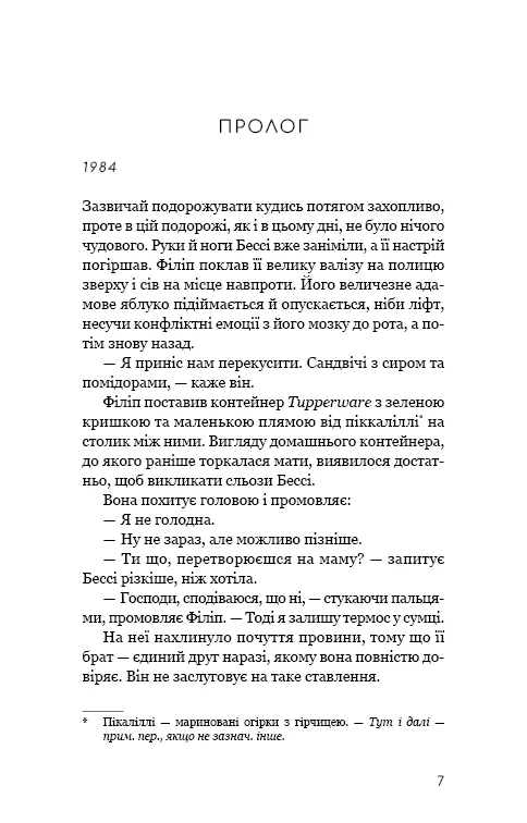 Сюжет переносить читача в дві часові площини — у 1984 рік, коли юна Бесс тільки вступає у доросле життя, та у 2021 рік, коли їй вже за п'ятдесят, а позаду — роки мовчання, страждань та втрат. Її шлюб із Маріо руйнується, і вона має зробити вибір: залишити все як є чи подивитися у вічі минулому.