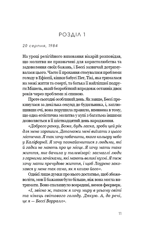Книга Життя з чистого аркуша — це новий емоційний роман авторки Аманда Прауз. У центрі сюжету — Бессі, яка в шістнадцять років мала великі мрії та упевненість у власному майбутньому. Таємниця, яку вона носитиме з собою все життя, змінює її долю й накладає відбиток на роки, що минають.