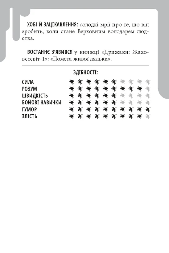 Книга Дрижаки: Ніч живих ляльок — чудовий подарунок для підлітків, які захоплюються містикою, хоррором і не бояться зустрітись віч-на-віч з темною стороною уяви. Цей твір гарантує незабутні враження і змусить серце битися частіше.