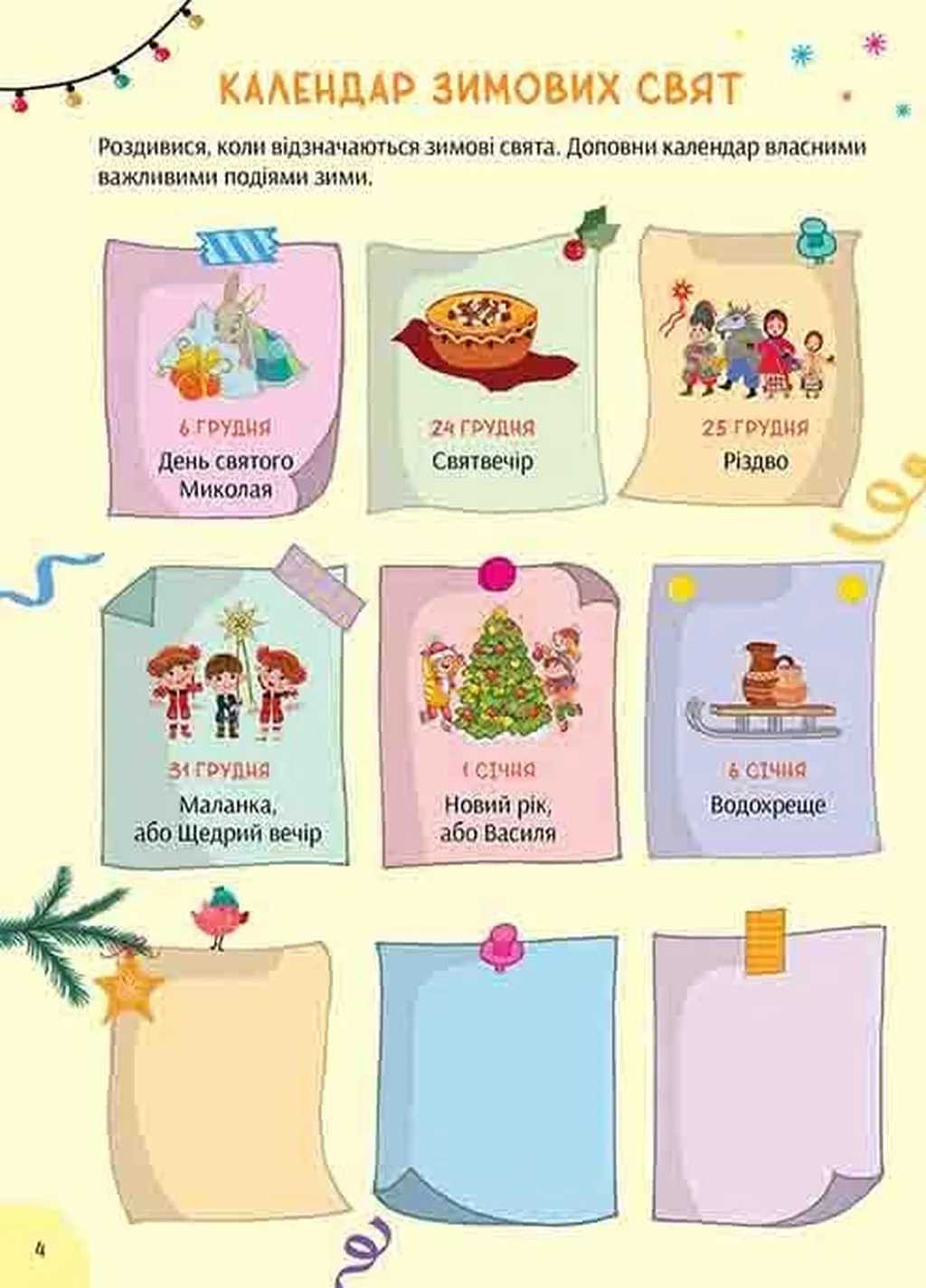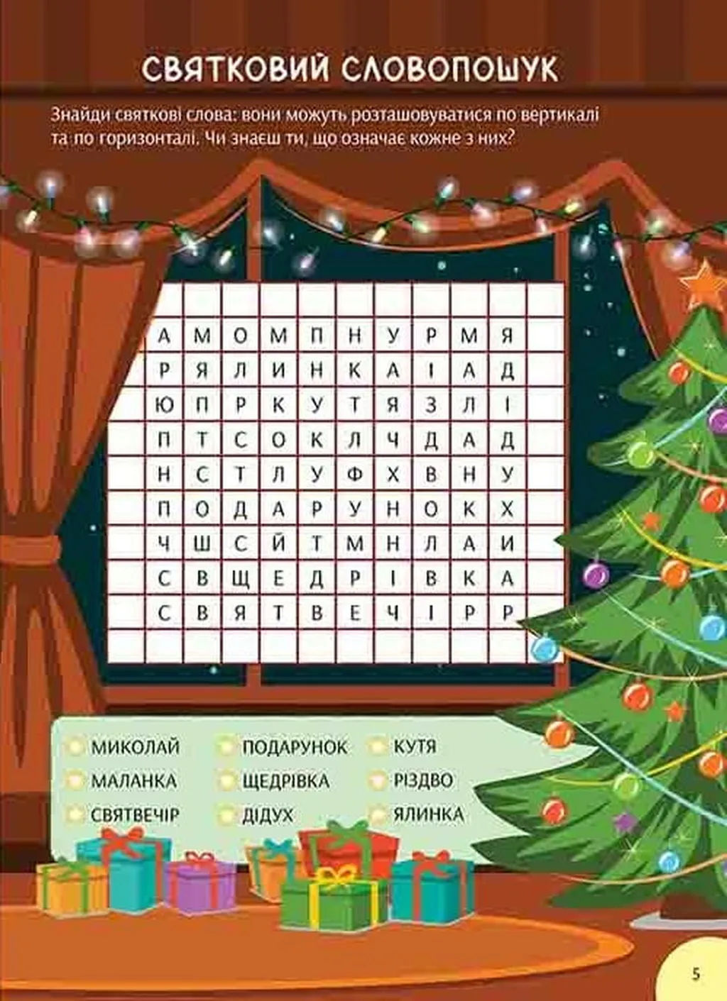 Це не просто дитяча книжка, а справжній інтерактивний помічник, що містить безліч завдань, ігор, творчих проектів та корисної інформації про українські й світові традиції зимових свят.