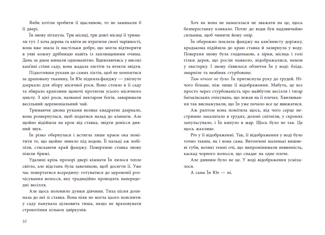 Але вона дізнається темну таємницю, яку імператорська родина приховує століттями, а ще палацом ширяться чутки про сімох загадково зниклих наречених! І світ Їн перевертається, усі її сподівання й саме життя летять шкереберть. Проте чи готова зухвала й завзята дівчина сидіти склавши руки? Аж ніяк! Не тоді, коли її замикають перед весіллям, і вже точно не коли кругом лютує битва епічного масштабу. Та чи вистачить Їн сили? Чи стане мудрості?