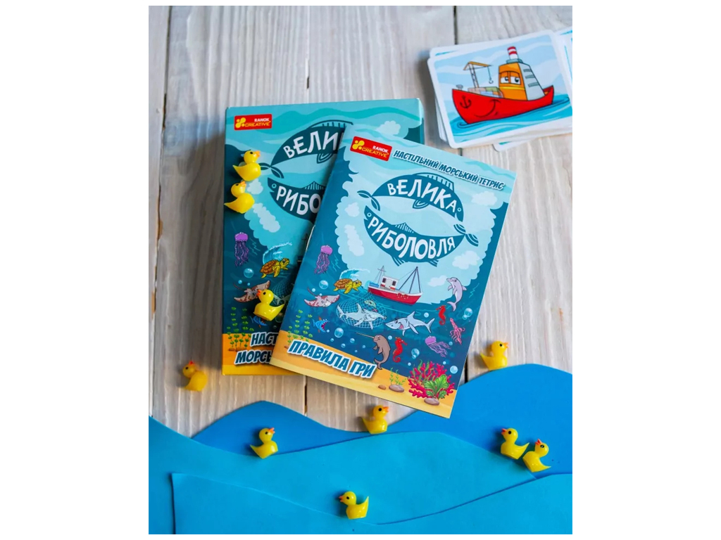 Настільний морський тетрис Велика риболовля — це захоплююча настільна гра, що поєднує в собі веселощі, логіку та турботу про природу. Вона ідеально підходить для сімейного дозвілля, коротких перерв під час подорожей або святкувань та навіть для шкільних занять. Гра розрахована на 1–4 гравців віком від 7 років.