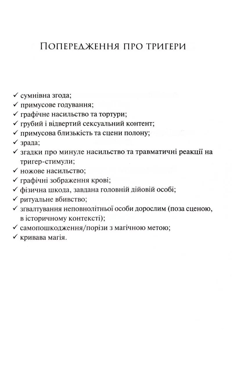 Цей роман призначено для повнолітніх читачів, які готові до сильного емоційного занурення у світ темного фентезі.
