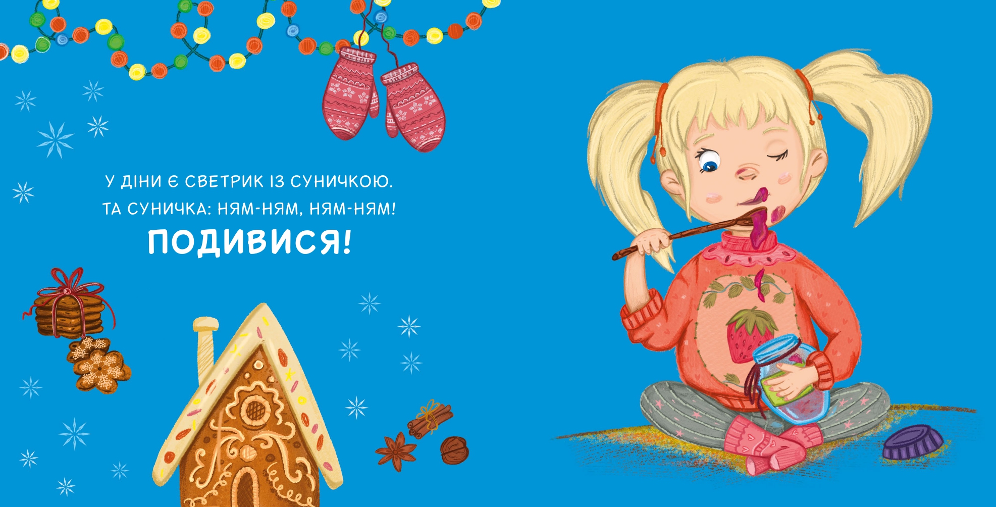 «Светрики» – це книжка-картонка для дітей і батьків. Вона про затишок: удома, поряд із рідними, у читанні. Ця книжка грайлива, жартівлива і трошки святкова.