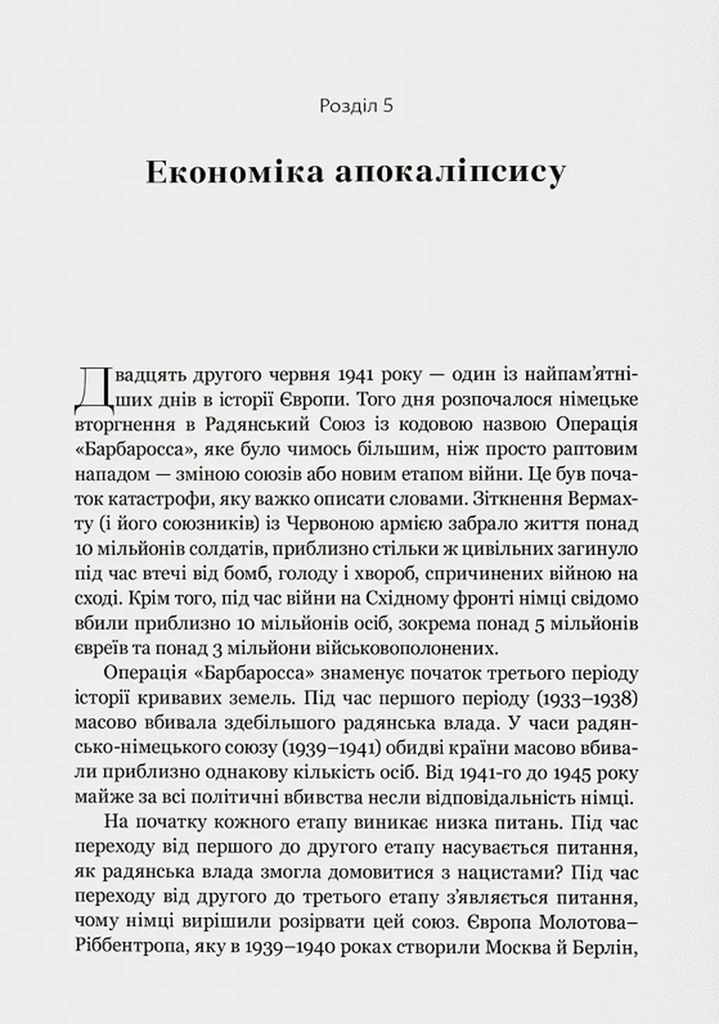 Снайдер аналізує ці події як єдину історичну категорію – території, де обидва режими систематично знищували мільйони людей.