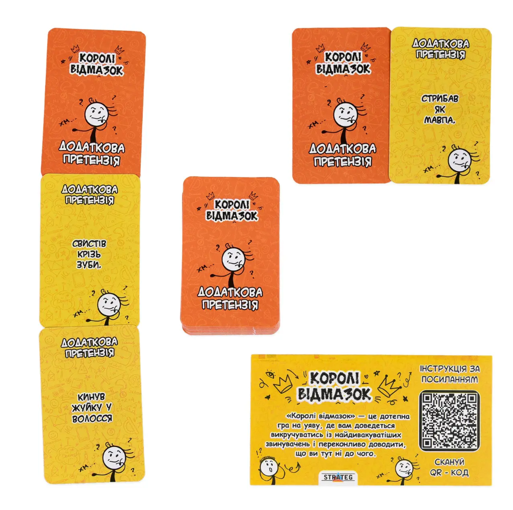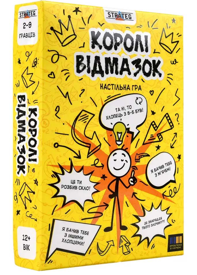 Ця настільна гра чудово підійде для підлітків, молоді або всієї родини. Якщо ви любите імпровізувати, жартувати й вигадувати несподівані аргументи — Strateg Королі відмазок саме для вас!