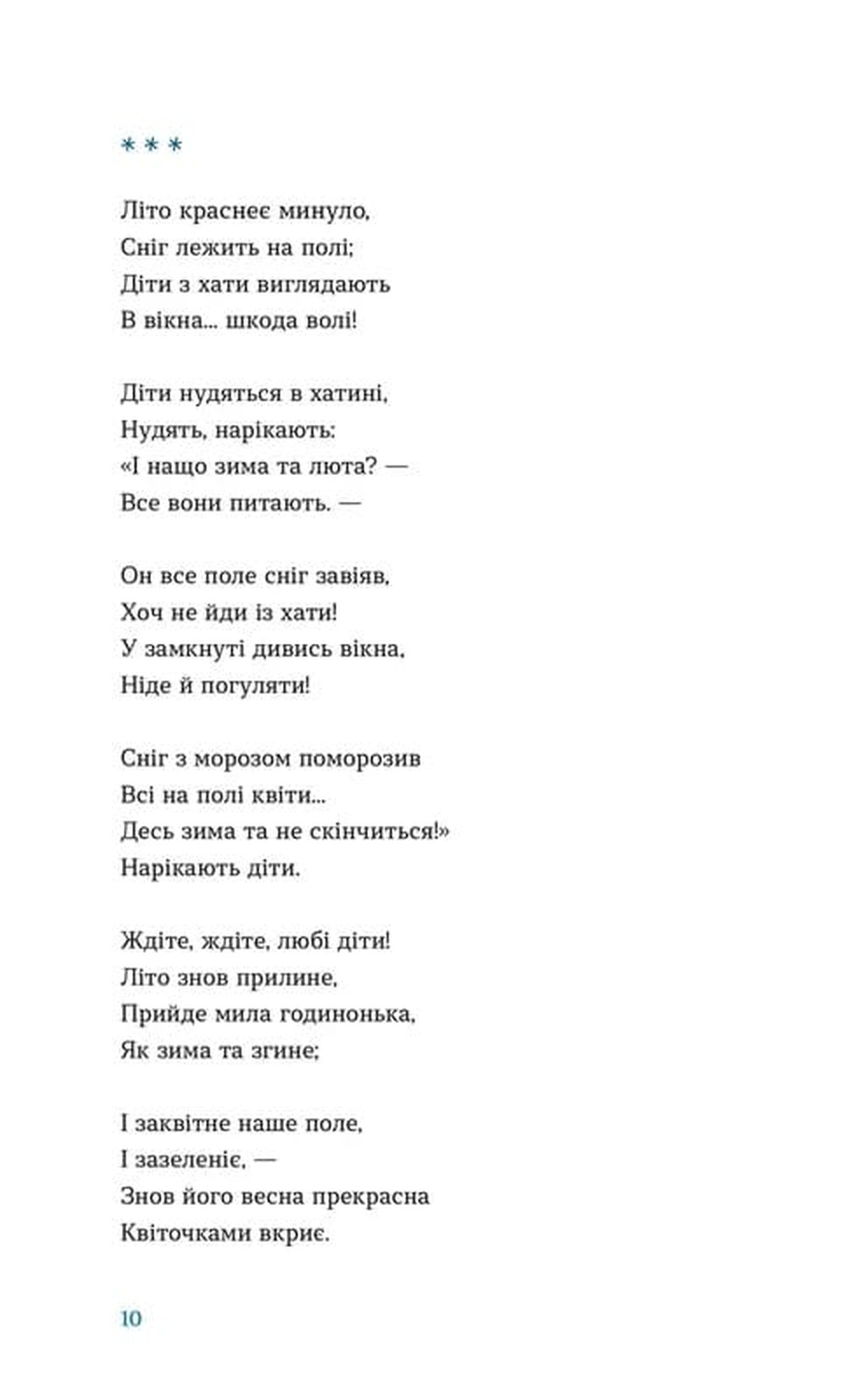 Вірші підібрано у хронологічному порядку. Це дозволяє читачеві плавно пройти шлях від одного покоління поетів до іншого, від минулого — крізь складні історичні події — до сучасності. Видання також збагачене професійними ілюстраціями. Вони створюють атмосферу домашнього затишку та надають книзі тепла, яке надзвичайно цінне зимовими вечорами.