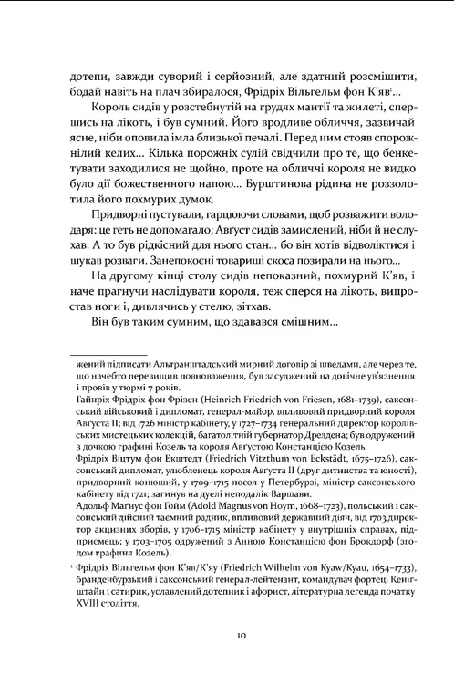 Цікаво, що крізь призму стосунків головних героїв читач отримує змогу побачити історичні процеси тих часів. Зокрема, роман змальовує період після Полтавської битви та антикозацьку політику Авґуста II, що може бути надзвичайно актуальним для українського читача.