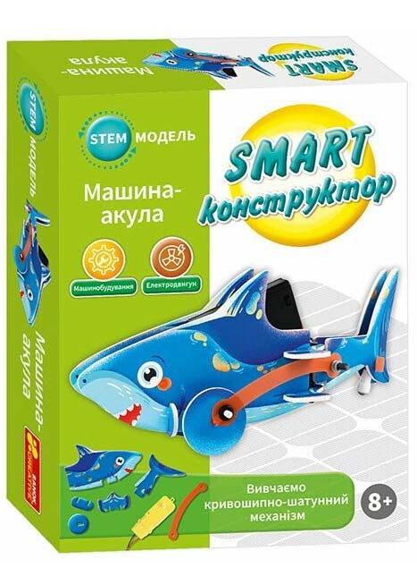 Оживи акулу власноруч, збери свою першу рухому модель з реальним механізмом. Поринь у світ науки та винаходів разом із SMART конструктором Машина-акула!