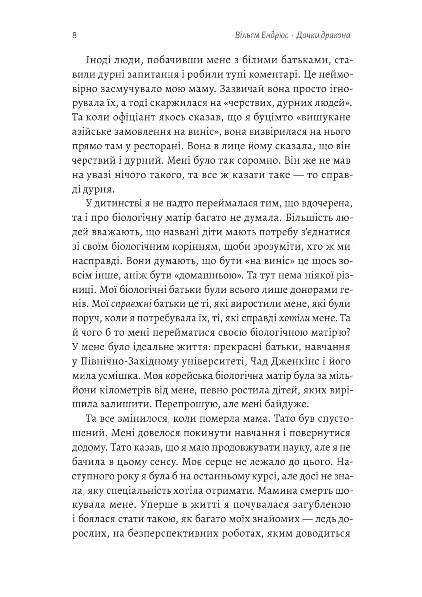 Книга Дочки дракона авторства Вільяма Ендрюса — це драматичний роман, який не залишає байдужим. Перша частина трилогії, що відкриває двері до шокуючих сторінок історії Кореї та Китаю часів японської окупації.