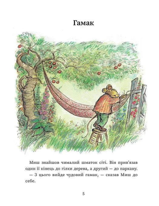 Коли Миш вигадує і створює власний гамак, Кріт з радістю береться протестувати його, намагаючись допомогти другу. А Миш натомість допомагає Кроту у важливій справі — пошуку загублених окулярів. І головне, що об'єднує ці пригоди — щира, справжня дружба, яка робить буденне щастям.