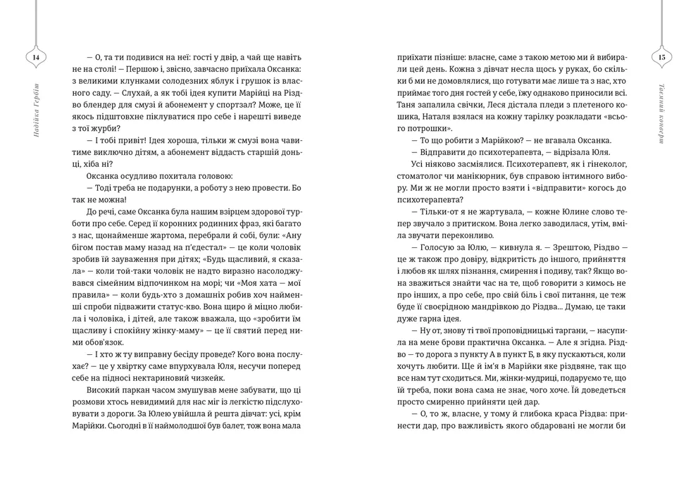 Дитячі спогади про (не)ідеальне свято з сімейними драмами чи про таємне вшанування Божого народження у заборонений час, історії про бабу, яка хотіла вмерти на Різдво, про візит до батьків із вухатим сюрпризом і довгоочікуване повернення сина з фронту, про маленьке пухнасте диво, яке саме обрало бути різдвяним дарунком, або ж про ангелів, якими можемо стати й ми. Історії сміху, радості, пам’ятування огорнуть теплом сімейного затишку і підведуть до найважливішого зимового свята — Різдва.
