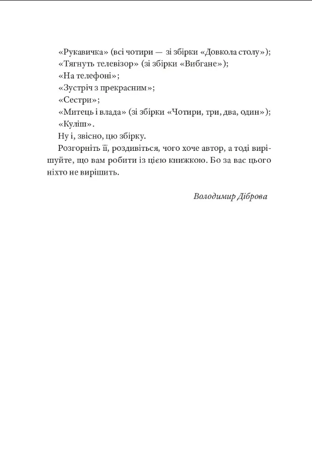Володимир Діброва є автором численних творів, серед яких варто виділити Бурдик, Козак Ямайка та Андріївський узвіз. Ці твори, як і збірка Три по п’ять, вирізняються оригінальністю мистецького бачення та вмінням передавати складні ідеї простою мовою.